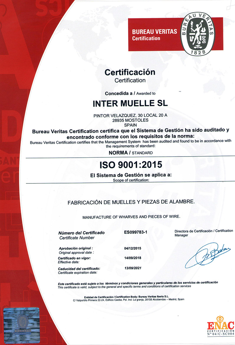 La calidad es un compromiso y responsabilidad de todo el personal de INTER MUELLE,SL y participan de forma activa en el mantenimiento y mejora continua de nuestro Sistema de Gestión de Calidad.